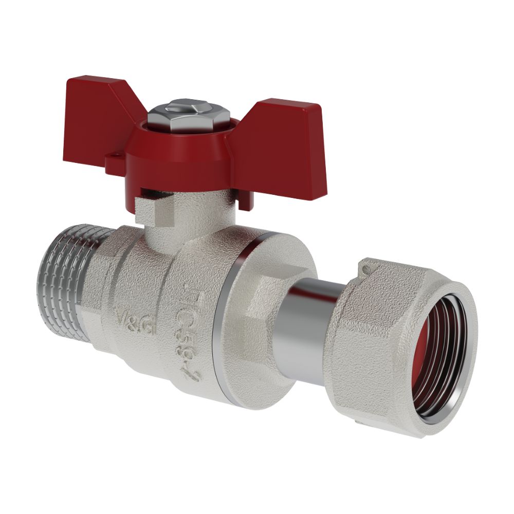Кран шаровой с накидной гайкой, рукоятка-"флажок" серия Оптима V&G VALOGIN