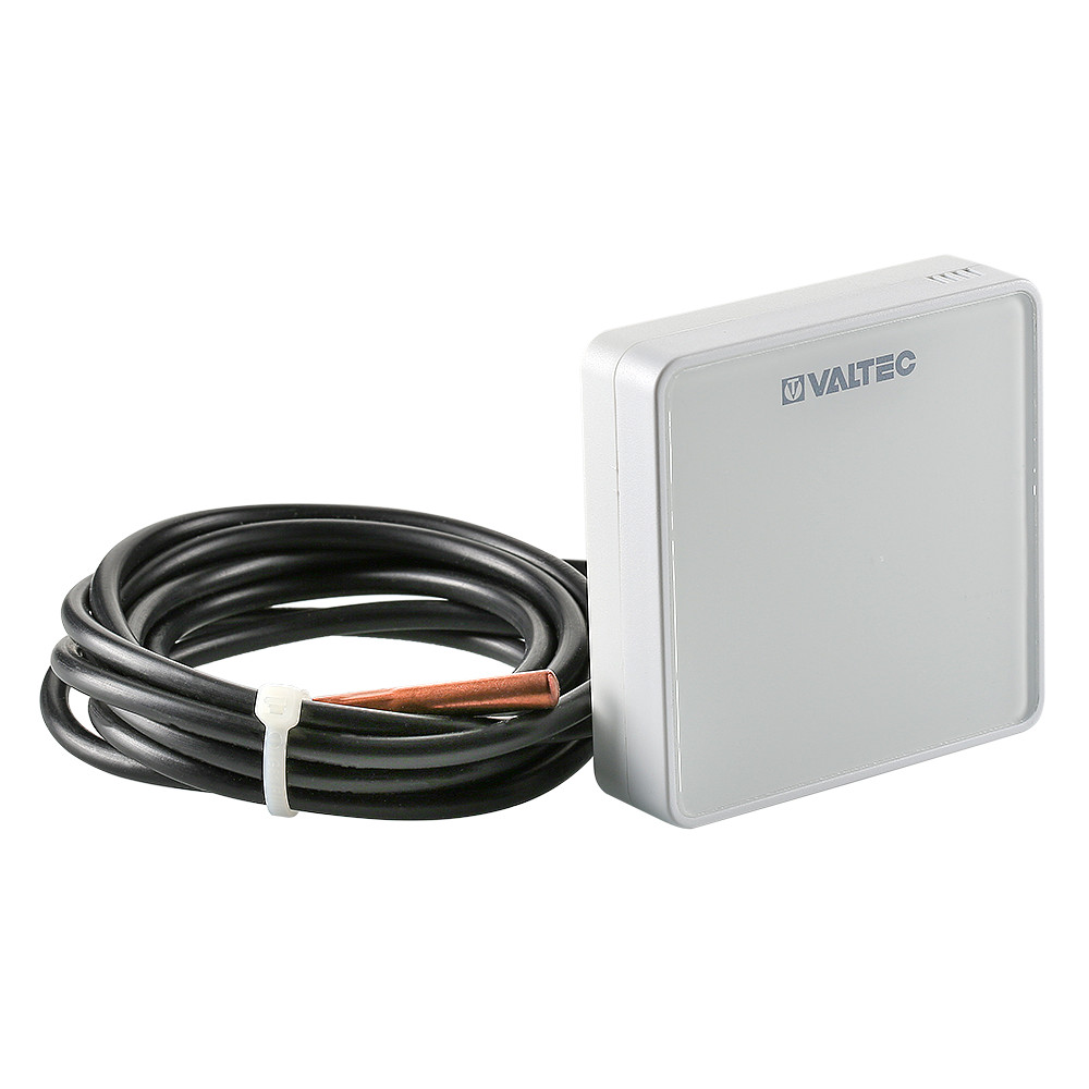 (VT.C8.F) Беспроводной комнатный датчик VT.С8.F.0 предназначен для измерения температуры стяжки тёплого пола в помещении и передачи по радиоканалу информации на беспроводной зональный контроллер VT.STL.8E.0, который управляет приводами клапанов системы отопления или охлаждения.