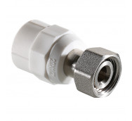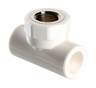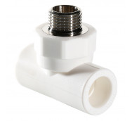 (VTp.752.0) Двухсторонний комбинированный фитинг (полипропиленовый фитинг) для соединения под углом 90° друг к другу полипропиленового трубопровода и компонента инженерной системы с резьбовым подключением. Резьба фитинга – внутренняя трубная по ГОСТу 6357. Предусмотрен участок корпуса шестигранной формы, под гаечный или трубный рычажный ключ.