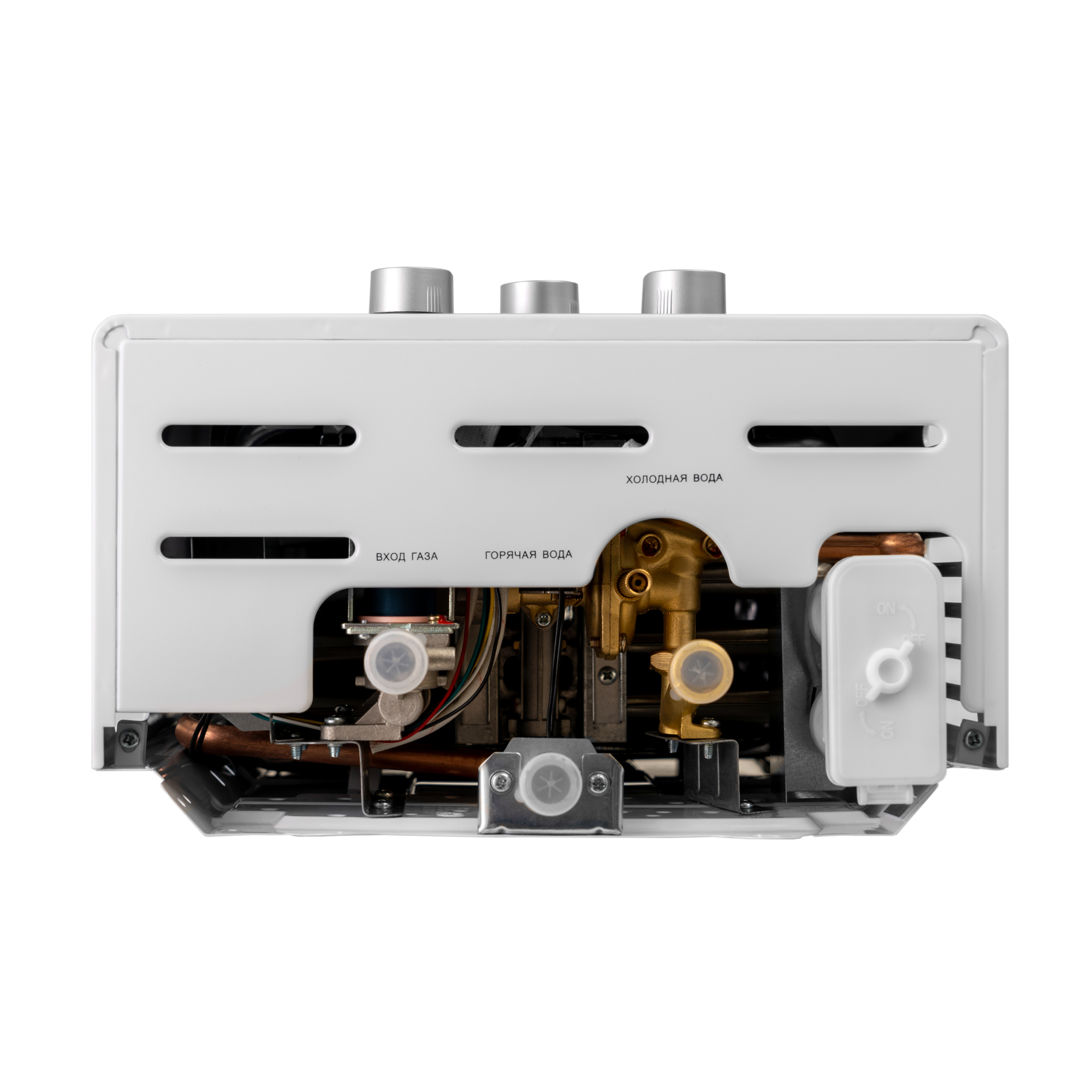 Газовый проточный водонагреватель с открытой камерой сгорания, механической модуляцией и питанием от батареек 2 Х 1,5 В LR20.