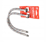 (VTf.005.IS) Комплект гибкой подводки для подключения смесителя объединяет в себе пару подводок гибких VALTEC c концевыми элементами гайка–штуцер, 1/2” х M10, длина штуцера – 18 и 35 мм (такое сочетание обеспечивает удобное подсоединение подводки).