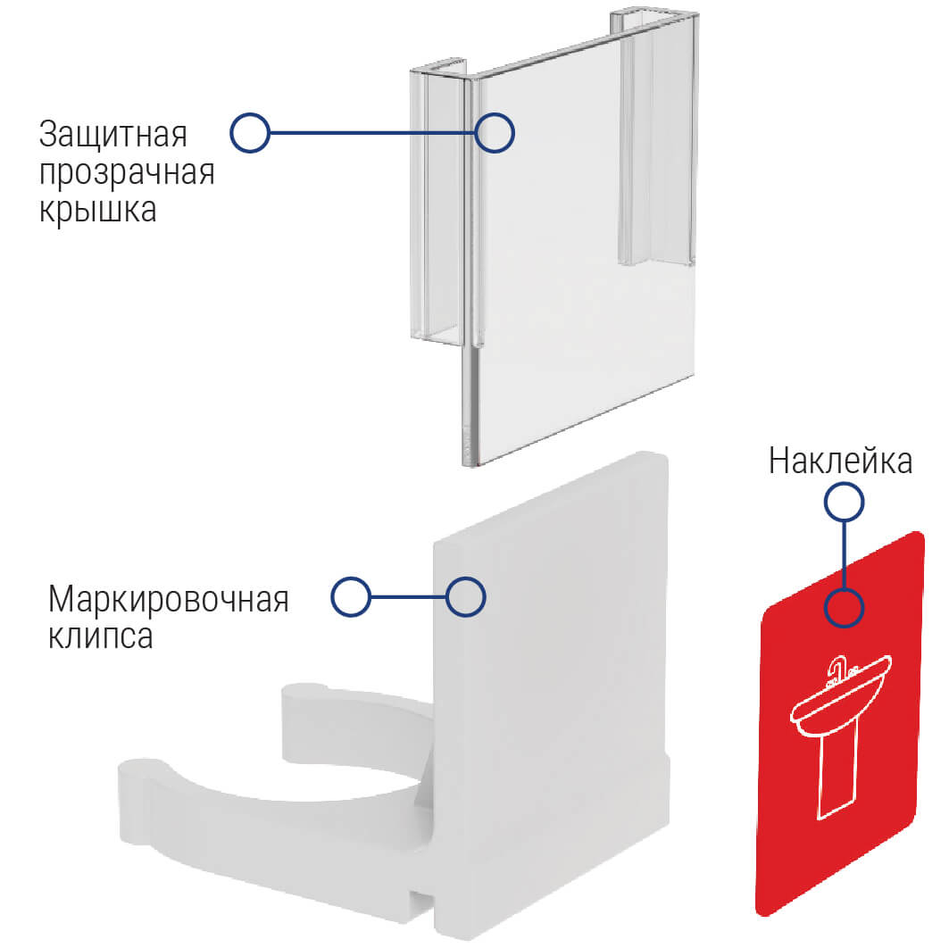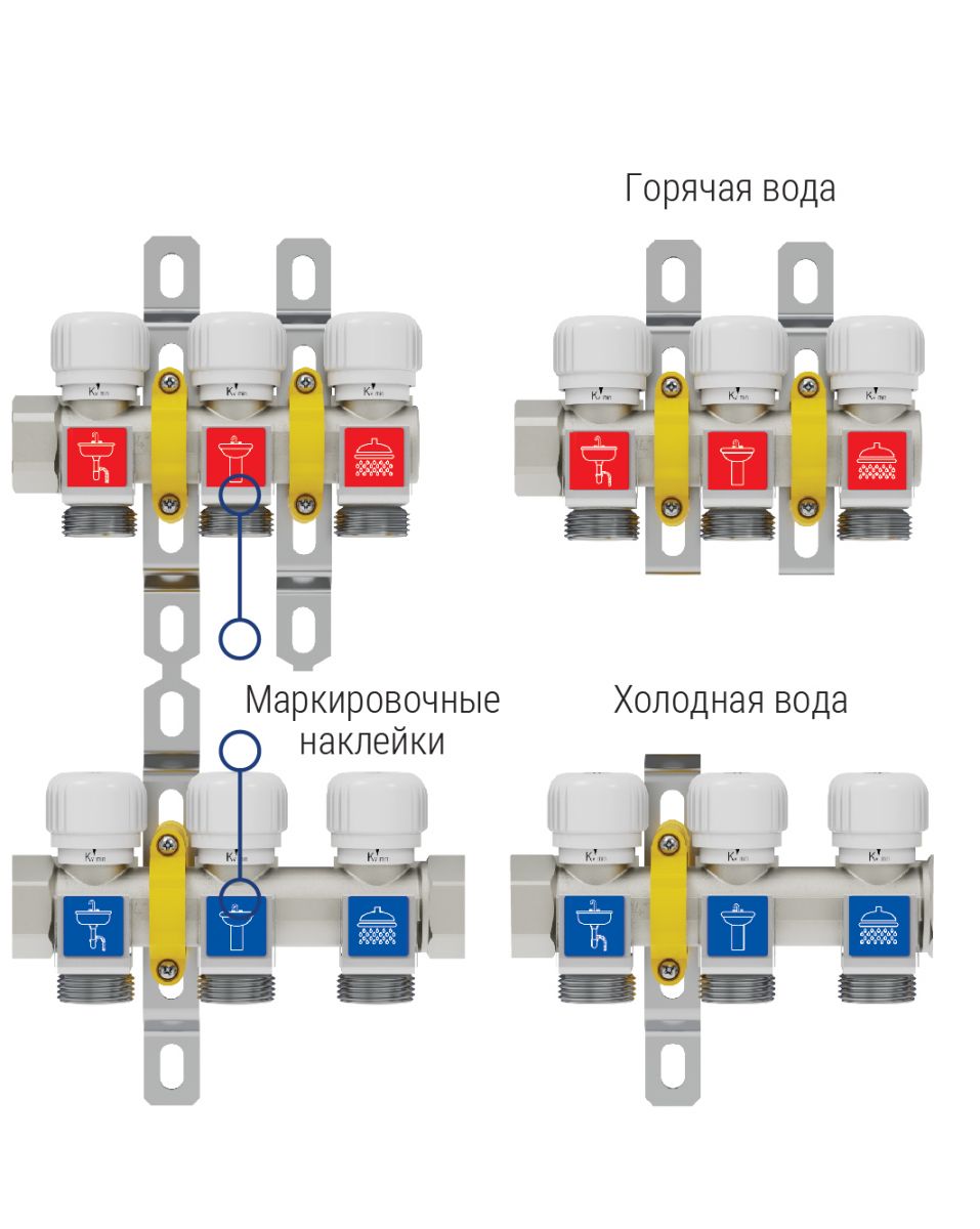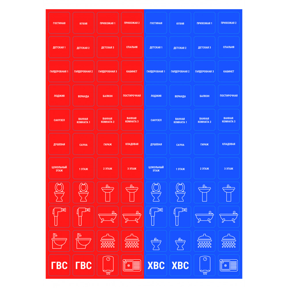 Синие наклейки предназначены для выходов с холодной водой. Красные наклейки для выходов с горячей водой.
