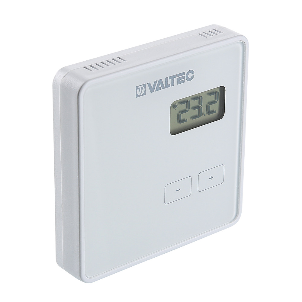 (VT.R8.B) Беспроводной комнатный терморегулятор VT.R8.B.0 предназначен для измерения и индикации температуры воздуха в помещении и передачи по радиоканалу информации на беспроводной зональный контроллер VT.STL.8E.0, который управляет приводами клапанов системы отопления или охлаждения.